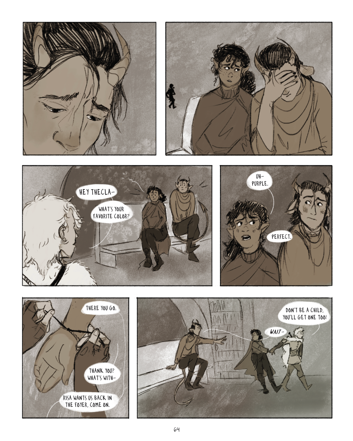 Highlights from my MFA thesis project: a 96-page graphic novel adapted a personal TTPRG campaign. Covers the introduction of the second major arc in the story. Adapted, scripted, and illustrated between September 2024-April 2025. (Full PDF available upon request.)